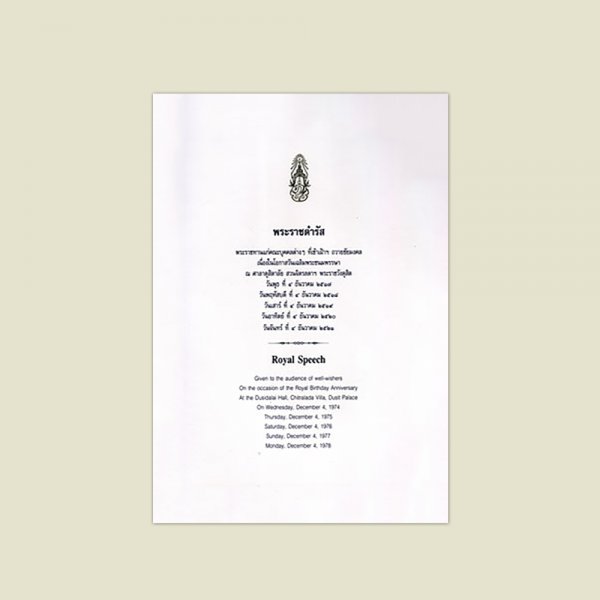 ผลงานการแปลพระราชดำรัสจากวันเฉลิมพระชนพรรษาของพระองค์เองในทุกๆ ปี จากภาษาไทยเป็นภาษาอังกฤษ โดยเริ่มจากวันที่ 4 ธันวาคม พ.ศ. 2532 ซึ่งเป็นเรื่องน้ำและสิ่งแวดล้อม และได้รับความสนใจอย่างมากจากสหประชาชาติ ส่งผลให้วันที่ 4 ธันวาของทุกปีเป็น "วันสิ่งแวดล้อมไทย" อีกด้วย