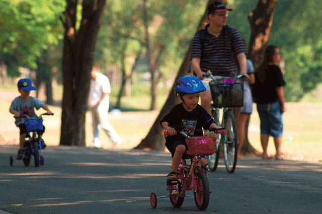 เลยตลาดนัดจตุจักรไปหน่อยเดียว เราก็จะได้พบกับสวนสีเขียวอีกแห่งหนึ่งในกรุงเทพฯ สวนรถไฟ พื้นที่ให้ปั่นเล่นกันถึง 3 กิโลเมตรและเพิ่งเปิดเลนจักรยานใหม่เมื่อต้นเดือนที่ผ่านมาด้วยนะ เหมาะกับการมาพักผ่อนกับก๊วนเพื่อนในวันหยุด ถ้าเมื่อยตรงไหนก็แวะพักชมธรรมชาติได้ทุกที่ แถมยังมีบริการอื่นๆ อย่างสนามเทนนิส สนามบาสเก็ตบอล สนามฟุตบอล สนามเปตอง ล่องเรือ และสระว่ายอีกด้วย