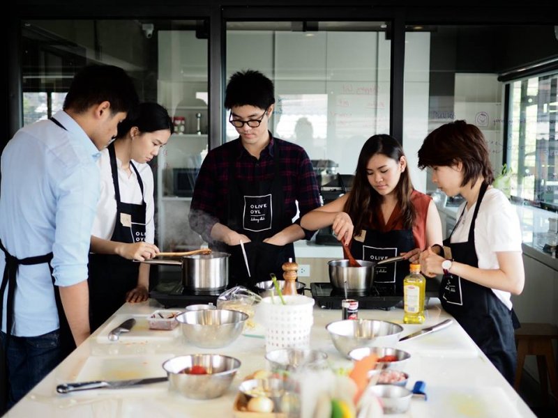 จริงๆ แล้วทาง Oliveoyl Baking Studio นั้นมีคลาสกลุ่มอยู่ตลอดทุกเดือน ซึ่งรวมทั้งคลาอาหารคาวและของหวานด้วย แต่ส่วนตัวแล้วเราว่าสำหรับวันแม่ Private class น่าจะเหมาะสุด เพราะเราสามารถเลือกวันและเวลาไปเรียนกับคุณแม่สองคนตามเวลาที่ต้องการ แน่นอนว่าได้เรียนครอบคลุมตั้งแต่พื้นฐานการใช้อุปกรณ์ เทคนิคการผสม การคำนวนและดัดแปลงสูตร การรักษาขนม และการดีไซน์ในรูปแบบสร้างสรรค์ สตูดิโอเปิดให้เช่าด้วยนะสำหรับคนที่อยากจัดปาร์ตี้ส่วนตัว คลาสสำหรับหนูน้อยอายุ 4 ขวบขึ้นไปก็มีเหมือนกัน!