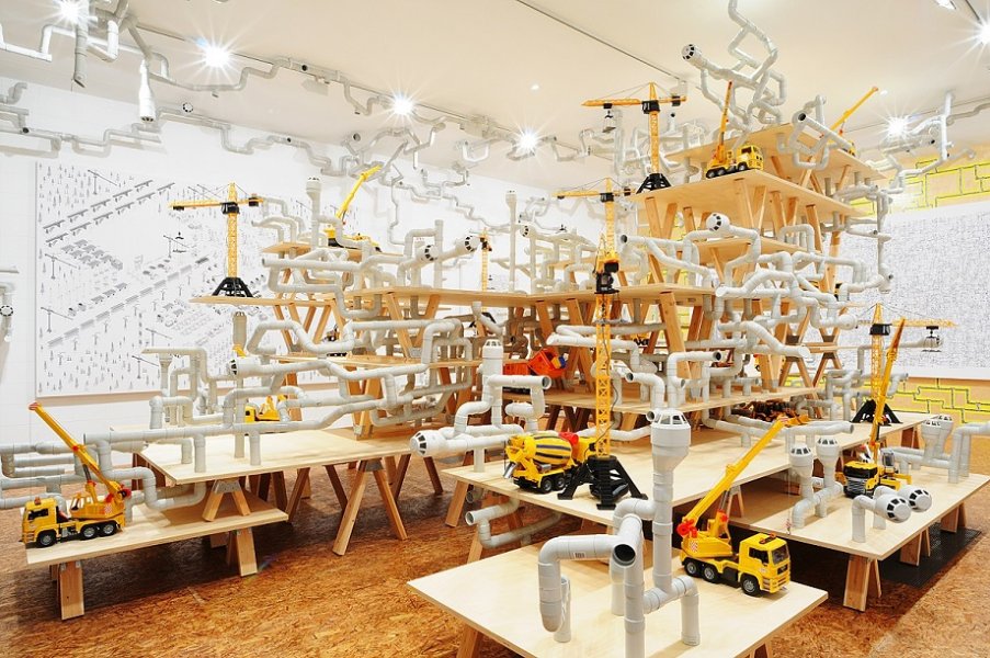 ผลงานศิลปะจัดวางขนาดใหญ่ยักษ์โดยกลุ่มศิลปินชาวญี่ปุ่น Paramodel (ยาสุฮิโกะ ฮายาชิ และ ยูซุเกะ นากาโน) ครอบคลุมพื้นที่ทั้งชั้นหนึ่งของโรงละคร โดยศิลปินพยายามนำเสนอการเชื่อมต่อแบบไร้ขอบเขตของโลกข่าวสารในปัจจุบัน ผ่านผลงานศิลปะที่มีหน้าตาคล้ายไซต์ก่อสร้าง ซึ่งเป็นโครงสร้างต่อกันของวัสดุหลากหลาย เช่น ท่อน้ำ รางรถไฟพลาสติกสีฟ้า ทำให้เกิดเป็นพื้นผิวและสีที่ตื่นตาตื่นใจ