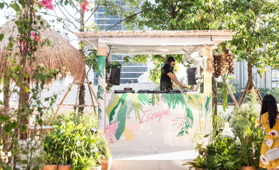 แต่บอกเลยว่าบีชคลับที่นี่ไม่เหมือนที่ไหนในโลกแน่นอน เพราะแทนที่จะรายล้อมด้วยต้นมะพร้าวกับผืนน้ำทะเลสุดลูกหูลูกตา กลับกลายเป็นวิว 360 องศาใจกลางมหานครที่คึกคักอันดับต้น ๆ ของโลก ใครมานั่งที่ Escape Bangkok แห่งนี้ น่าจะรู้สึกเหมือนหลุดมาอยู่ในอีกโลกหนึ่งเหมือนเรา มีความคอนทราสต์ระหว่างความ escape แบบหนีรักมาพักร้อน ปนเปอยู่กับการเสพย์บรรยากาศของเมืองหลวงใต้ร่มเงาทรอปิคัลลั้นลา