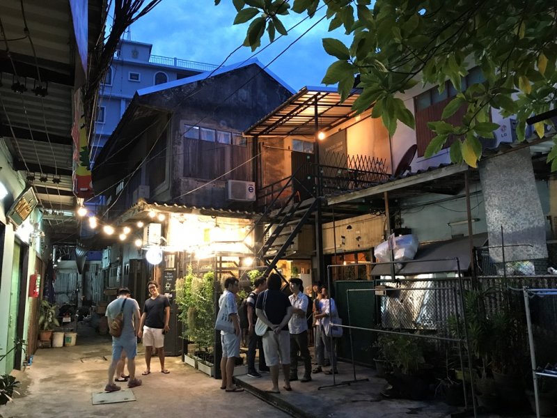แต่ตอนนี้ ถนนตะนาวเพิ่งได้ต้อนรับเพื่อนบ้านใหม่อย่าง Fox Hole Art Shelter Cafe คาเฟ่กึ่งอาร์ตสเปซที่แท็กทีมกับ Bandai Dam Studio ที่ตั้งอยู่บนชั้นสองของตัวร้าน เพื่อให้เป็นแหล่งพบปะของคนรักหนังภายใต้ชื่อ DAM’N Cineclub ซึ่งจัดฉายหนังและทอล์คน่าสนใจสำหรับคนรักหนังด้วย