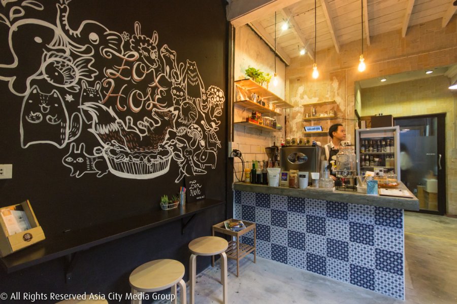 หลังจากที่โชคชะตาพาให้เธอได้มาเจอกับพื้นที่ร้านตรงนี้ ซึ่งเดิมเคยเป็นร้านน้ำชา และเธอรู้สึกว่าการที่มันตั้งอยู่ในตรอกเล็กๆ ให้ความรู้สึกเป็นเหมือนทางเข้าสู่สถานที่ลับ เธอเลยเลือกใช้ชื่อว่า Fox Hole Art Shelter Cafe