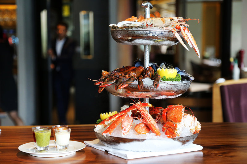 ส่วนตอนนี้ที่นี่ก็มีเมนูสุดอลังการอย่าง The Ultimate Seafood Tower (ราคาตั้งแต่ 2,999-5,999 บาท) ที่ยกมากันทีเดียวถึง 3 ชั้นเต็ม ๆ มีตั้งแต่หอยแมลงภู่ ปูจักจั่น กุ้งแลงกูสทิน สโมคแซลมอน เครย์ฟิช และแคนาเดียนล็อบสเตอร์ ทั้งหมดเสิร์ฟมาแบบซีฟู้ดเย็นกับน้ำจิ้มอีก 4 รสชาติที่เลือกตามชอบได้เลย เราชอบกุ้งแลงกูสทินที่เนื้อแน่น ๆ จิ้มกับน้ำจิ้มรสเผ็ดร้อนช่วยให้มีรสชาติมากขึ้น แอบแนะนำว่าจิบสปาร์คกลิ้งไวน์ตามไปด้วยสักหน่อย โอ้โห ฟินลืม