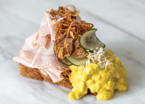 Lady Brett ร้านบาร์บีคิวจากสาทรได้ขยับขยายมาเป็นส่วนหนึ่งของ 72 Courtyard โดยเมนูบรันช์นี้ได้เชฟ Patrick Martens มาดูแลและยังคงความเป็นตะวันตกเช่นเคย ไม่ว่าจะเป็นเมนูไข่จานโตอย่าง Uber Egg (495 บาท) เนื้อแก้มวัวตุ๋นสุดนุ่มลิ้นกับไข่คนและเห็ด หรือจะเป็น Soft Shell Crab Sandwich (510 บาท) แซนวิชปูนิ่มที่อัดแน่นด้วยเบคอนกรุบกรอบ ไข่ดาว และเพิ่มความประหลาดใจด้วยมายองเนส horseradish ที่มีรสเผ็ดรสเผ็ดกำลังดี ถ้าใครชอบมะพร้าวก็อย่าลืมสั่งของหวานอย่าง Deep Fried Coconut Cream Nugget (215 บาท) ไอศครีมวานิลลาคลุกมะพร้าวขูดชุบแป้งทอด ราดด้วยซอสช็อคโกแลต คาราเมล พร้อมช็อคโกแลตครัมเบิลให้เคี้ยวกันกรุบๆ สำหรับเครื่องดื่มมีทั้งกาแฟ ม็อกเทล และค็อกเทล เติมความสดชื่นได้ตามใจชอบเลย