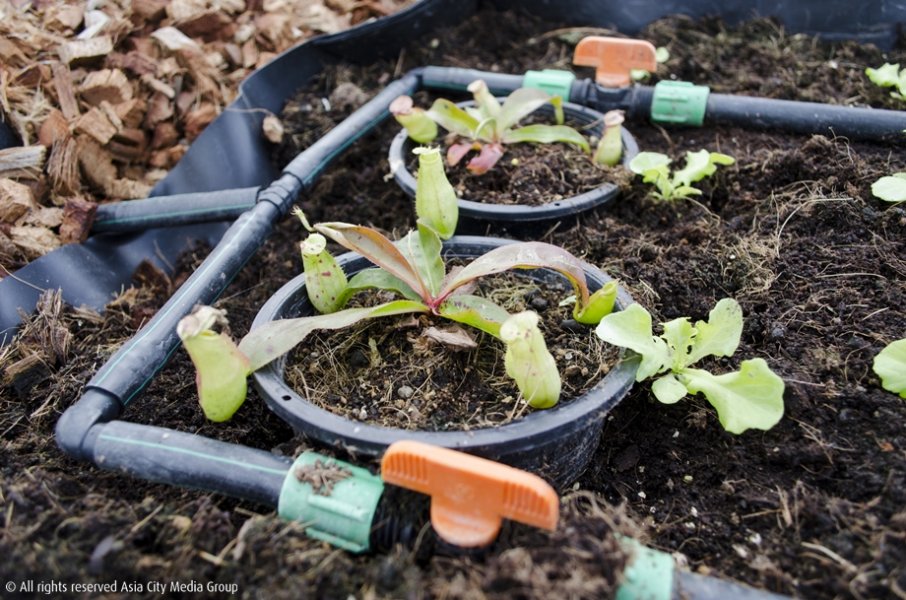 "ผักของเราคือผักที่เพิ่งเก็บเกี่ยวมาจากฟาร์มจริงๆ ในเวลาไม่ถึง 3 วัน สังเกตได้จากขั้วมะเขือเทศที่ยังอยู่กับลูกอยู่เลย" คุณพอท-มิตรดนัยชี้ให้เราดู