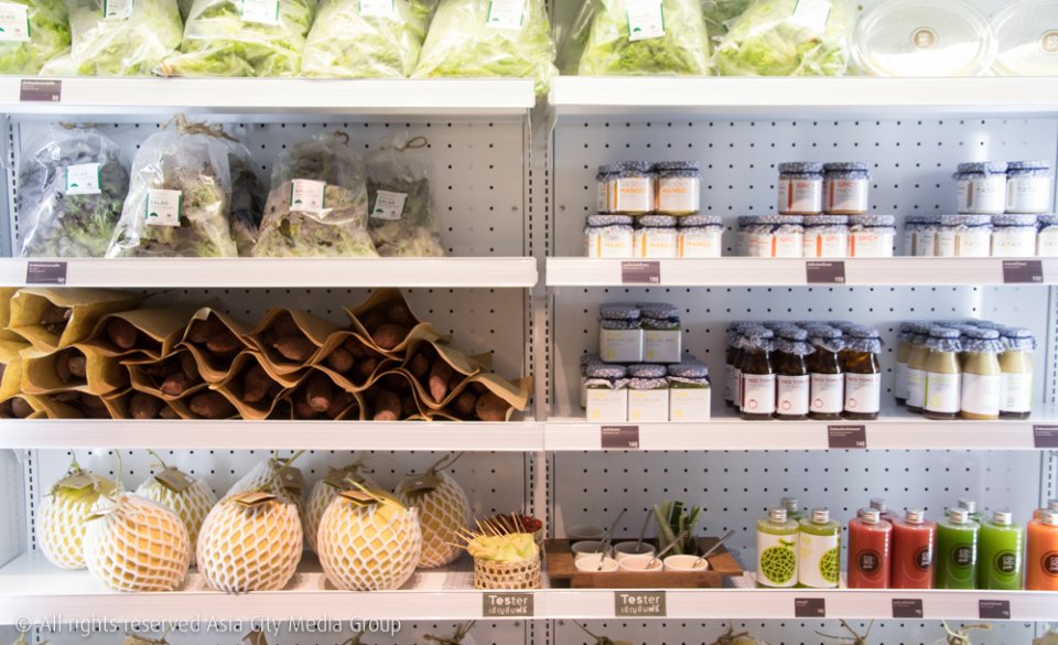 นอกจากจะนั่งกินที่ร้านได้อย่างสำราญใจแล้ว เรายังสามารถสั่งเครื่องดื่มต่างๆ สลัดกล่องพร้อมทาน อาหารเบ็นโตะ ตลอดจนผลผลิตสดๆ ทั้งเมลอน มะเขือเทศ มันม่วงหวาน และผักสลัดกลับบ้านได้อีกด้วย ถ้าใครเกิดติดใจน้ำสลัดหรือซอสขึ้นมาก็มีขายเป็นขวดอีกเช่นกัน