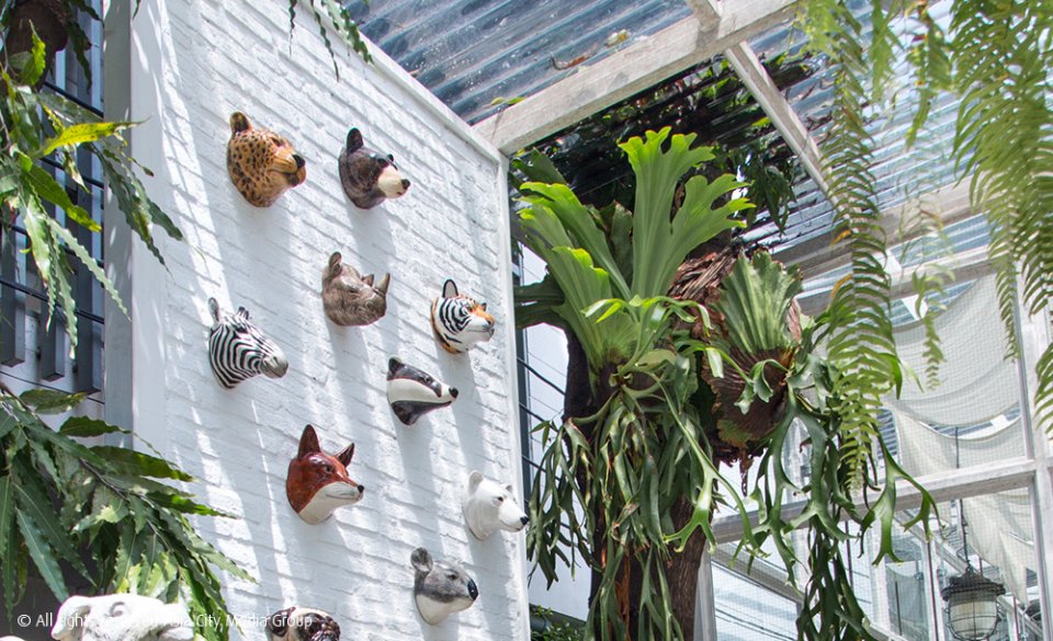 พื้นที่ทั้งหมดขนาดไร่เศษๆ เลยถูกเนรมิตให้กลายเป็นสวนสวยสไตล์อังกฤษ โดยแบ่งออกเป็น 3 ส่วนหลักๆ คือโซนอาหาร คาเฟ่ และห้องเวิร์กช็อป ทั้งหมดทั้งมวลนี้ถูกรวมอยู่ภายใต้บรรยากาศวินเทจเต็มรูปแบบ เดินเข้าไปแล้วรู้สึกเหมือนไม่ได้อยู่ในกรุงเทพฯ เลย