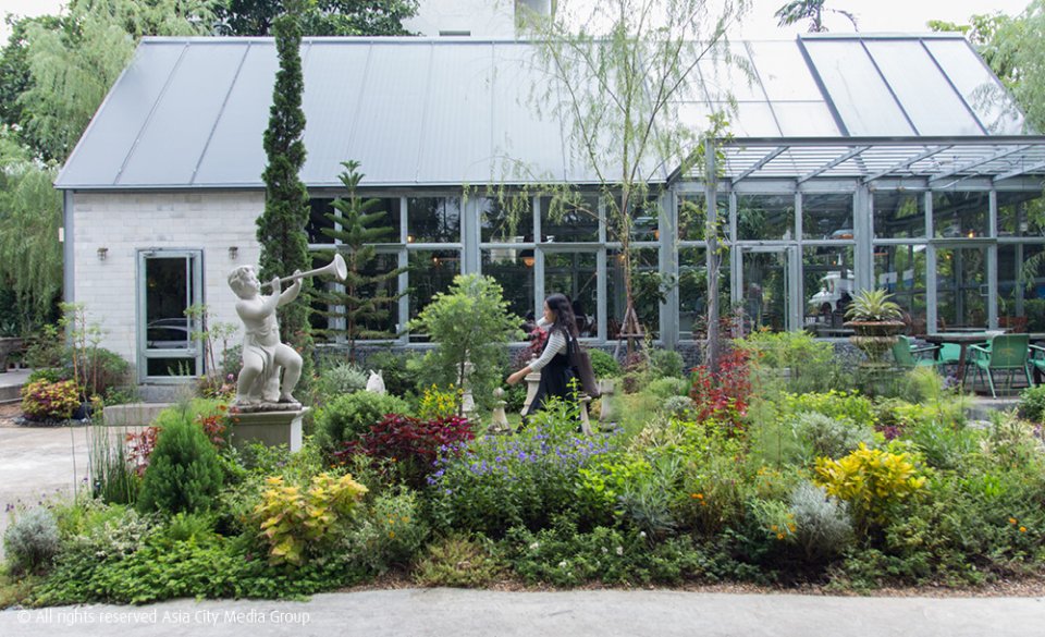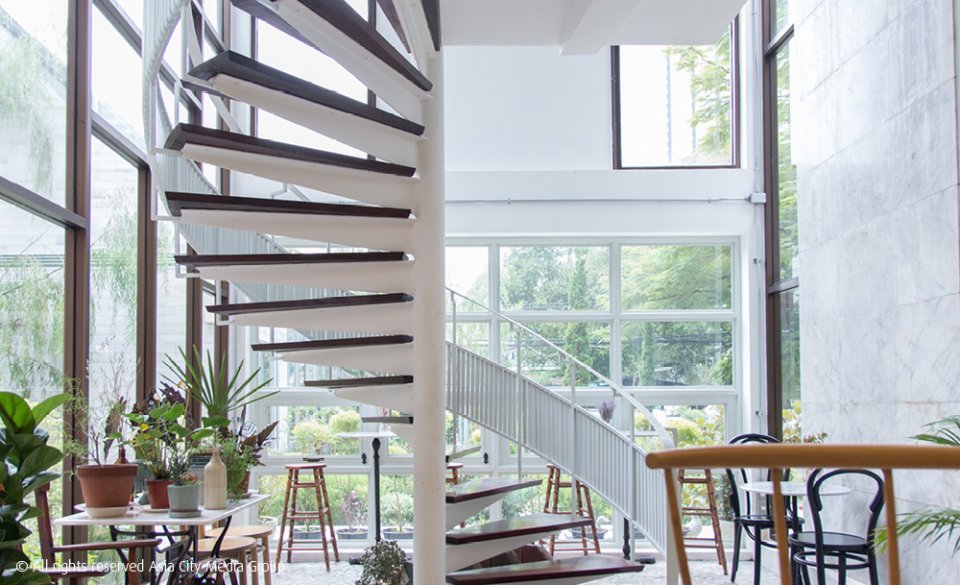 กึ่งกลางระหว่างเรือนกระจกทั้งสองหลังคือบ้านเก่าสองชั้นที่ยังดูคลาสสิคอยู่แม้จะผ่านเวลาไปนานกว่า 60 ปีแล้วก็ตาม ซึ่งถูกใช้เป็นที่นั่งสำหรับคาเฟ่ เสิร์ฟเบเกอรี่อบใหม่ๆ จากครัวแบบเปิด แถมด้วยส่วนของบาร์กาแฟและเครื่องดื่ม