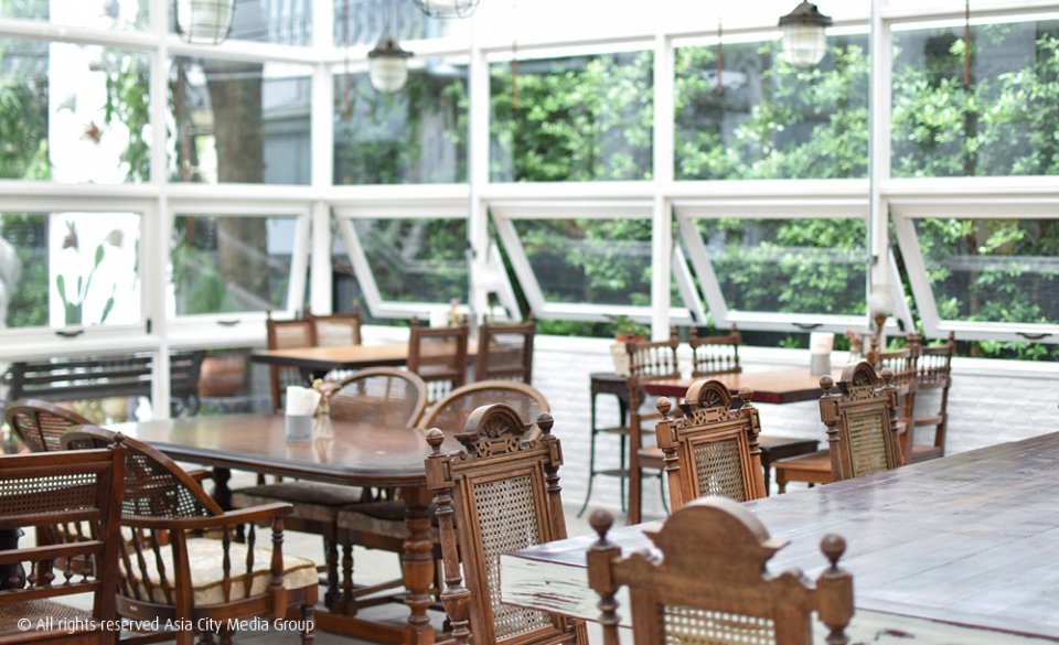 เรือนกระจกหลังเล็กอีกฝั่งจะเปิดเฉพาะวันเสาร์-อาทิตย์เท่านั้น ซึ่งเรือนนี้ตกแต่งด้วยบรรดาข้าวของที่สายวินเทจอย่างเราอย่างย้ายบ้านมาอยู่ในนี้ ไม่ว่าจะเป็นเฟอร์นิเจอร์ไม้สีเข้ม ดอกไม้แห้ง และรูปปั้นปูนสไตล์อังกฤษ รับรองว่าถูกใจสาวๆ แน่นอน โดยปกติแล้ว เรือนหลังนี้จะถูกจองพื้นที่ไว้สำหรับงานเวิร์กช็อปดีๆ ที่จะมีมาจัดอยู่เป็นประจำ อย่างล่าสุดก็เพิ่งมีคลาสจัดดอกไม้จาก Sugar & Spice Club ไปหมาดๆ