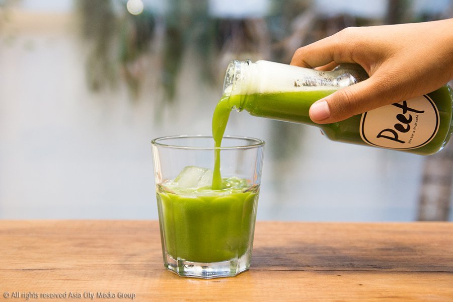 ด้วยความที่ทางร้านจริงจังเรื่องผลไม้ เราจึงขอแนะนำน้ำผลไม้คั้นสดกันก่อนเลย มี 2 แบบหลักๆ คือ Solid Juice หรือน้ำผลไม้ชนิดเดียวเน้นๆ (ส้ม แตงโม สับปะรด ฝรั่ง มะพร้าว และแครอท, ขวดละ 80-100 บาท) และ Combo Juice ปั่นรวม อาทิ Greenday (แอปเปิ้ลเขียว สับปะรด กีวี่ เคล ผักโขม และลูกแพร์, ขวดละ 140 บาท) น้ำพลังเขียวเปรี้ยวอมหวานที่ไม่เหม็นเขียวเลยสักนิด หรือจะเป็น Passion Dash (เสาวรส แอปเปิ้ล ส้ม และสัปปะรด, ขวดละ 130 บาท) ที่คนชอบเปรี้ยวจี๊ดๆ น่าจะถูกใจ