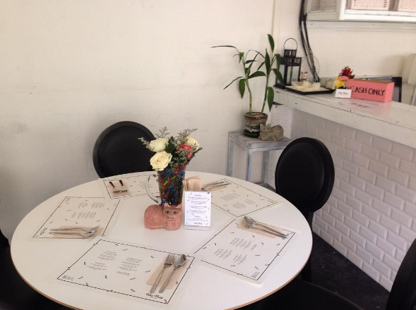 คาเฟ่จิ๋วแต่แจ๋วแห่งนี้ซ่อนตัว (ซ่อนจริงๆ! อย่าเดินเลยไปซะก่อนล่ะ) อยู่กลางซอยทองหล่อ 14 จะบอกให้ว่าเป็นทั้ง Airbnb สุดมินิมอลและแกลเลอรี่ในตัวด้วยนะ! มองด้านนอกอาจจะเป็นบ้านสีขาวธรรมดา แต่ถ้าได้ก้าวเข้าไปแล้วเหมือนว่าหลุดไปอยู่อีกโลกเลยล่ะ สเปซสีขาวตกแต่งด้วยผนังลายหินอ่อน พื้นกระเบื้องเขียว-ครีมให้อารมณ์โมร็อกกัน มีต้นไม้เล็กๆ อยู่หลายมุมเพิ่มความสดชื่นให้กับพื้นที่กระทัดรัด ความดีงามคือแสงธรรมชาติและเงาจากกระจกบานใหญ่บริเวณหลังคาที่ผ่านการออกแบบอย่างพิถีพิถันโดยคุณหงส์ เจ้าของร้านผู้เป็น Lighting Designer ในเวลาเดียวกัน