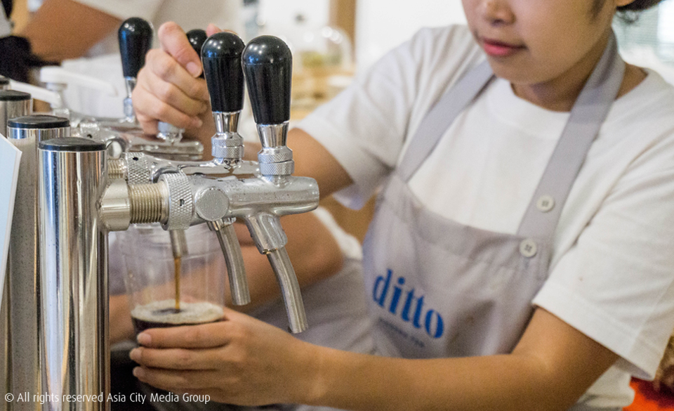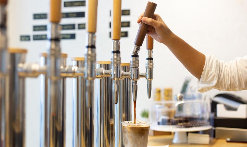 เบสหลักทั้งเมล็ดกาแฟจากเชียงราย และเมล็ดพิเศษในบางช่วงจากเคนย่า รวมไปถึงใบชาอบกลิ่นกุหลาบจากเชียงรายจะถูกนำมาสกัดเย็น (Cold Brew Process) แล้วใส่ลงในถังอัดก๊าซไนโตรเจน และกดออกมาจากหัวแท็ปทั้ง 6 กลายเป็นเบสของเครื่องดื่มที่หลากหลายของร้าน อาทิ Nitro Cold Brew Coffee (90 บาท) ที่การอัดก๊าซไนโตรเจนเข้าไป จะช่วยทำให้กาแฟสกัดเย็นบ้าน ๆ มีความนุ่มละมุน เทกซ์เจอร์มีความมันมากขึ้น และดึงกลิ่นกาแฟออกมาได้ชัดขึ้นด้วยเช่นกัน