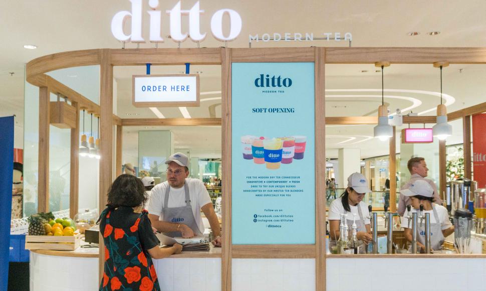 Ditto Modern Tea คือร้านชาสไตล์ Pop-Up ที่จู่ ๆ ก็โผล่ขึ้นมากลางเซ็นทรัลเวิลด์แล้วรื้อขนบทั้งหลายออกไป ปรับเปลี่ยนหน้าตาของชาใหม่ทั้งหมด เริ่มตั้งแต่วิธีการทำชา การเสิร์ฟ ส่วนผสม ไปจนถึงใส่วัตถุดิบลับที่มีชื่อว่า "ความสนุก" ลงไปด้วย