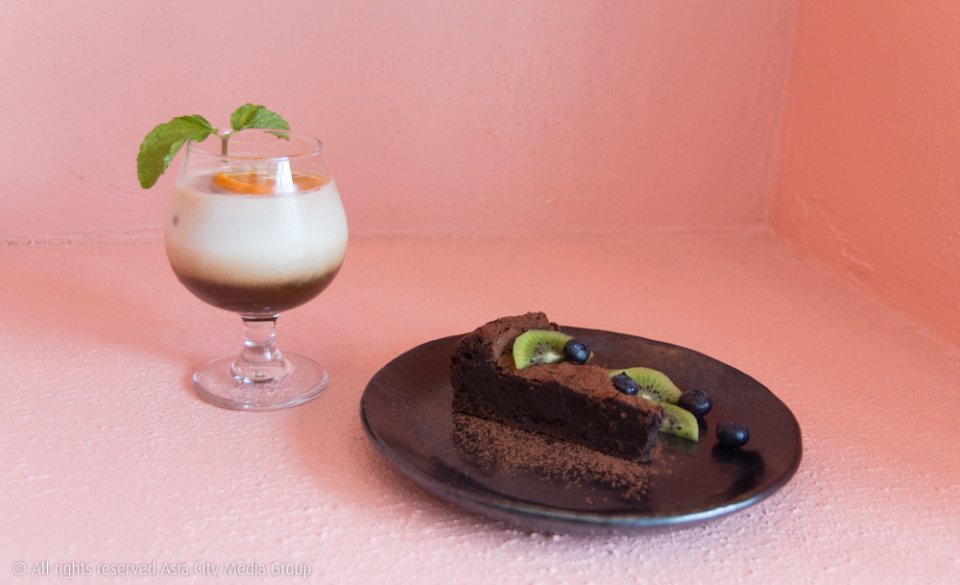 สำหรับใครที่ไม่ถนัดกาแฟ ฝรั่งเจ้าของร้านนี้อย่าง Gary Ford บอกว่าไม่มีปัญหาเลย เพราะที่นี่ยังมีทีเด็ดอีกหนึ่งอย่างที่อยากให้ทุกคนลองคือ Matcha Lime Soda (140 บาท) ถ้านึกภาพไม่ออกให้คิดถึงโซดามะนาวที่ผสมชาเขียวลงไป อารมณ์เปรี้ยวซ่าแบบมีกลิ่นชาเขียว สั่งมาจิบคู่กับ Flourless Chocolate Cake (160 บาท) ที่ Michelle Ford แฟนของแกรี่เป็นคนทำเองก็เข้ากั๊น เข้ากัน