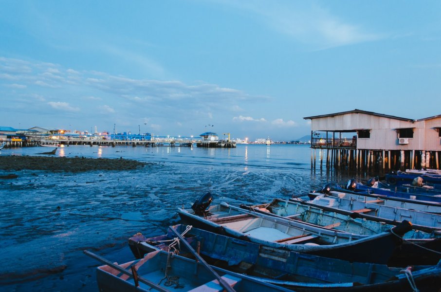 หมู่บ้านชาวประมง chew jetty (chew jetty, weld quay, george town) เป็นชุมชนเล็กๆที่อัดแน่นไปด้วยเรือนไม้ยกพื้นสูงและเป็นที่อยู่อาศัยของชาวเลและร้านรวงขายของที่ระลึกตลอดสองข้างทาง ด้วยความที่มันค่อนข้างห่างจากถนนใหญ่ เลยไม่มีเสียงรถเสียงแตรมากวนใจ แถมยังมีลมทะเลพัดมาเบาๆ เราไปนั่งดูพระอาทิตย์ตกดินที่นี่ บรรยากาศดีอย่าบอกใครเลยล่ะ