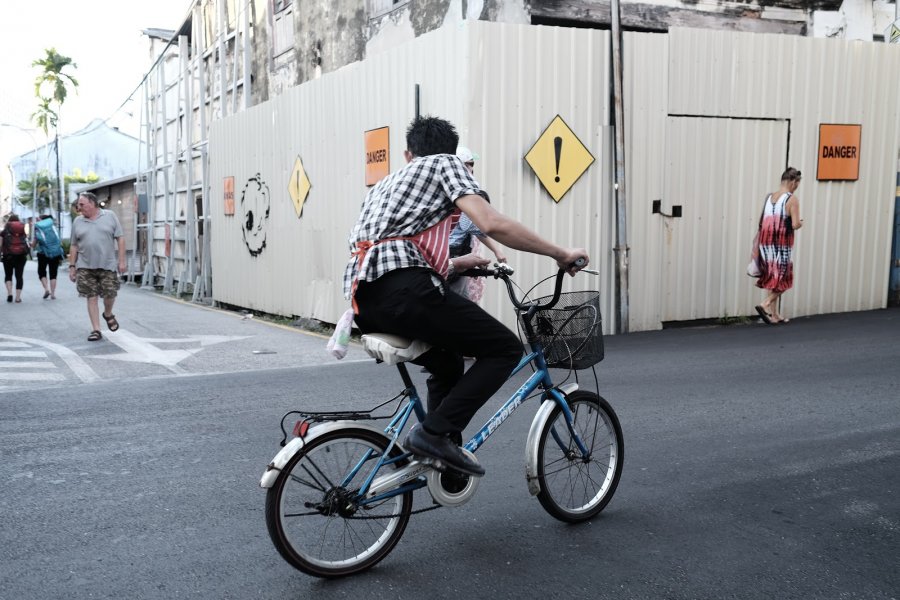 “ใครมาปีนังแล้วไม่ไปตามหา street art ถือว่ามาไม่ถึง” เจ้าของโฮสเทลที่เราไปพักเกริ่นมาซะขนาดนี้แล้ว เราจะพลาดได้ยังไง จริงๆ แล้วต้องบอกก่อนเลยว่าเหตุผลที่เราอยากมาปีนังนักหนาก็เพราะเจ้า street art ที่สื่อถึงวิถีชีวิตที่เรียบง่ายของผู้คนบนเกาะโดยศิลปินชาวลิธัวเนีย ernest zacharevic นี่แหละ