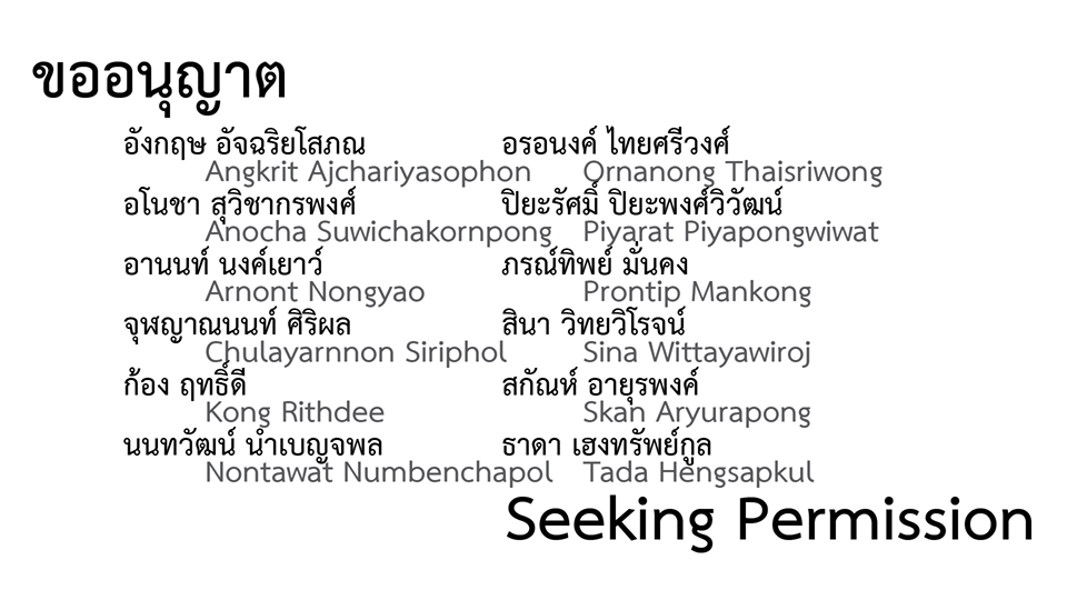 นิทรรศการที่ศิลปิน 12 คนจะมาขออนุญาตสร้างสรรค์งานที่เกี่ยวข้องกับประเด็นทางการเมืองและสังคม แค่ดูรายชื่อก็รู้เลยว่างานนี้ต้องเผ็ดร้อนชัวร์ ๆ