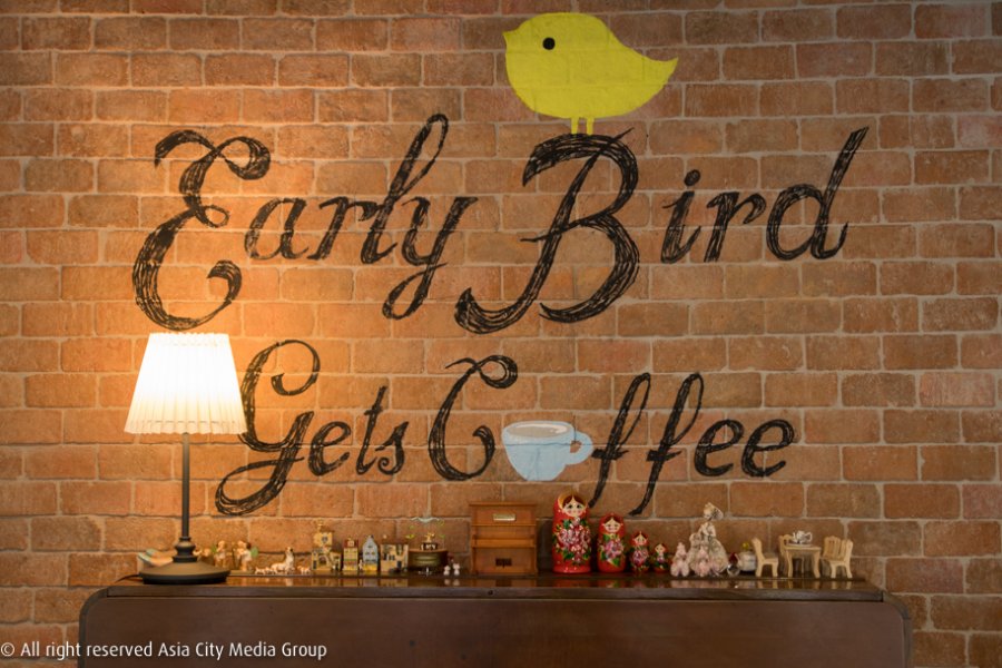 ส่วนชั้นล่างของ Montien Atelier นั้นเป็นที่ตั้งของ Early Bird Gets Coffee คาเฟ่อบอุ่นที่เหมือนเราอยู่ห้องนั่งเล่น มีระเบียงต่อออกไปถึงสวนหลังบ้าน และไม่ได้มีแค่กาแฟ เครื่องดื่ม เบเกอรี่ หรือไอศครีมเท่านั้น แต่ยังเสิร์ฟอาหารฟิวชันดีๆ อาทิ พิซซ่า และสปาเก็ตตี้ รวมถึงเมนูข้าวแบบไทยๆ อีกด้วย