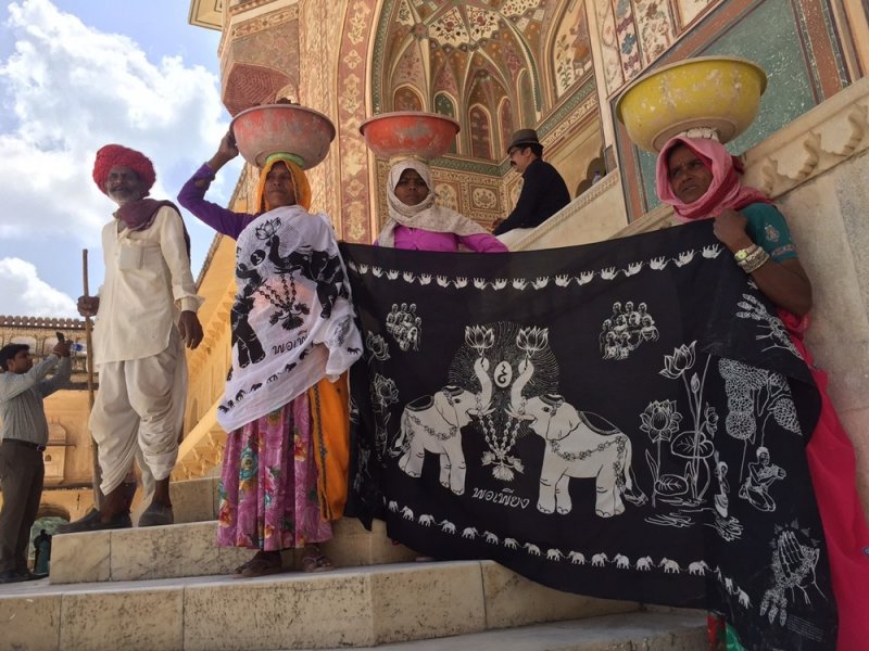 นอกจากนั้น ทางผู้ออกแบบยังเลือกใช้เนื้อผ้าฝ้ายและผ้าไหม 100% จากประเทศอินเดียมาเป็นวัสดุหลักในการทำผ้าลายกราฟฟิกผืนนี้ เรียกได้ว่าคุณภาพดีกว่าผ้าพันคอทั่วไปอย่างแน่นอน