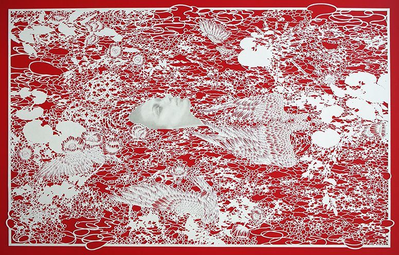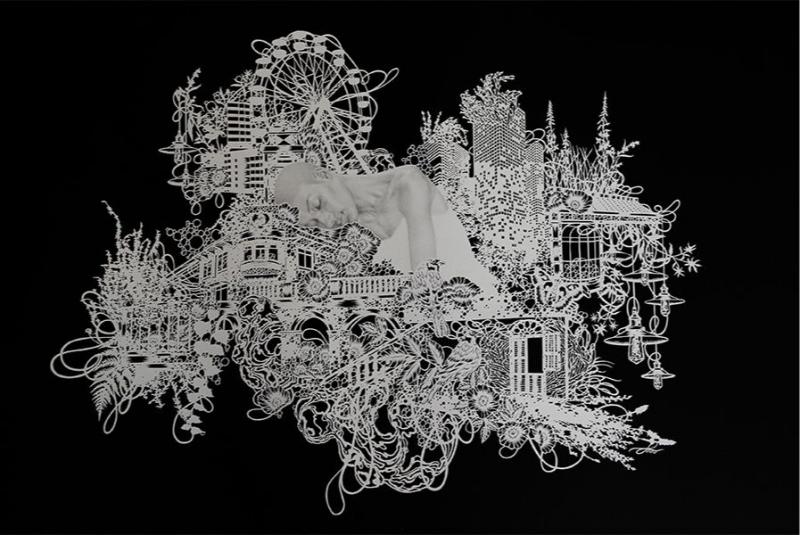 ซึ่งงานนี้คุณณรัชต์สร้างสรรค์ออกมาผ่านการวาดเส้นแบบที่เธอชอบ แต่ก็ไม่ใช่การวาดเส้นธรรมดา ๆ เพราะเป็นการวาดเส้นด้วยมีด ที่เรียกว่าเทคนิคการฉลุกระดาษ หูย แค่วาดเส้นปกติ เราก็ว่ายากแล้วอะ นี่เขาต้องใช้ทั้งสมาธิและทักษะที่ดีให้ฉลุได้ต่อเนื่อง กระดาษไม่ขาดออกจากกัน นับถือเลย! โดยแทบทุกชิ้นงาน เธอจะเลือกใช้ตัวละครเอกเป็นหญิงสาวในท่วงท่าปริศนา รวมถึงดอก Animore ตัวแทนของความรักที่ถูกลืม ซึ่งเป็นดอกไม้ในตำนานกรีกที่ว่ากันว่าเป็นดอกแห่งความเศร้าที่เกิดจากหยดน้ำตาของเทพีวีนัสจากการสูญเสียคนรักไป ปรากฎอยู่แทบทุก ๆ ชิ้น ซึ่งเป็นสัญลักษณ์ที่ช่วยบอกเล่าความรู้สึกของศิลปินออกมาได้อย่างงดงาม ใครผ่านไปผ่านมาแถวย่านสุขุมวิทต้องแว้บไปเดินสำรวจความมทรงจำของศิลปินคนนี้กันซะหน่อยแล้วแหละนะ