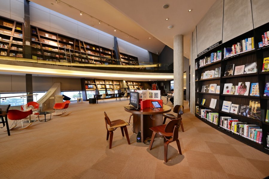 นอกจากจะมีความขลังแบบสถาปัตยกรรมเก่าแล้ว พื้นที่ของศูนย์สร้างสรรค์งานออกแบบแห่งนี้ยังถูกดีไซน์ให้ใช้งานได้หลากหลาย ซึ่งโซนที่เราชอบมากก็คือชั้น 2 ที่มี Material Room รวบรวมตัวอย่างวัสดุต่าง ๆ ที่สามารถใช้ในงานออกแบบได้ให้จับและเทียบได้จริง ๆ แถมค้นได้ทันทีว่าใครเป็นคนทำ ซึ่งมีตั้งแต่ใยมะพร้าว จนถึงใยโพลีเอสเตอร์ให้สายออกแบบไปเติมไฟในการทำงานกัน