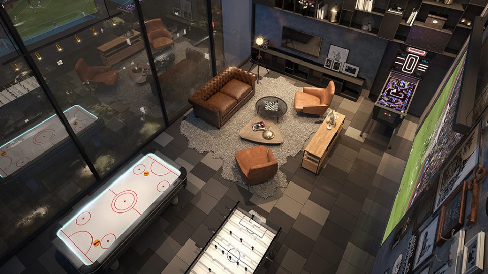 หรือโซนพักผ่อนอย่าง Game room ที่มีทั้งโต๊ะพินบอล แอร์ฮอคกี้ และจอโปรเจคเตอร์ขนาดยักษ์ เอาไว้ให้ชวนเพื่อนมาดูหนังเรื่องโปรดด้วยกันหลาย ๆ คน หรือจะรอเพื่อนบ้านสักคนมานั่งดูด้วยก็ยังไหว