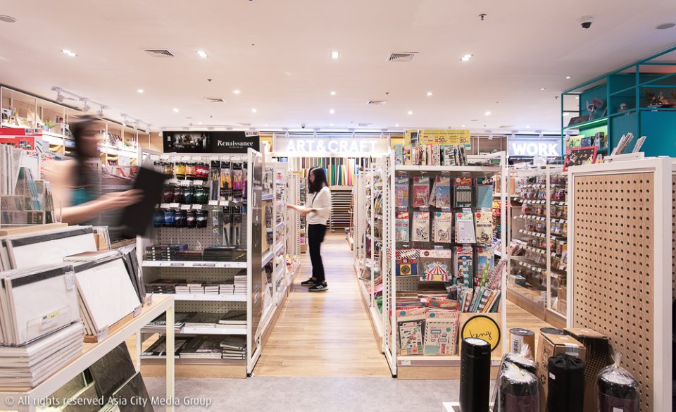 พอเดินลึกเข้ามาอีก เราก็เจอกับโซน Art & Craft Space ที่เต็มไปด้วยอุปกรณ์ศิลปะทุกประเภทไม่ว่าจะเป็นสีสารพัดยี่ห้อ พู่กัน อุปกรณ์ทำโมเดล ไปจนถึง งานดีไอวาย อปุกรณ์ไหมพรมสำหรับคนชอบถักนิตติ้ง นอกจากจะตอบโจทย์ทั้งสายอาร์ตสายคราฟท์แบบครบครันแล้ว ยังกระตุ้นกิเลสได้ดีเยี่ยมจนกระเป๋าตังค์ในมือเราสั่นไปหมด
