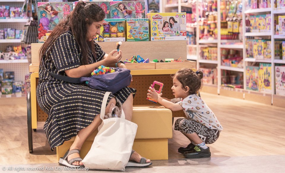 นอกจากโซนหนังสือสำหรับพี่คนโตอย่างเรา ที่นี่ก็มีโซน Play & Learn Space พื้นที่เสริมทักษะสร้างจินตนาการสำหรับเด็กทุกช่วงวัยด้วย โดยจะมีทั้งหนังสือสำหรับเด็ก และของเล่นเสริมทักษะสำหรับน้องวัยอนุบาลไปจนถึงประถม ซึ่งวันที่เราไปก็มีคุณพ่อคุณแม่พาน้อง ๆ มาเล่นของเล่นเสริมทักษะกันหลายคน เห็นบรรยากาศแล้วเราขอการันตีว่า ถ้าพาน้องมาด้วย รับรองว่าจะไม่มีการงอแงอยากกลับบ้านแน่นอน แต่อาจจะเป็นพี่ ๆ อย่างเราที่น้องต้องลากกลับบ้านแทน