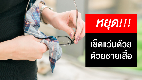 สารภาพมาซะดี ๆ ว่าทุกวันนี้ใช้ชายเสื้อเช็ดแว่นกันใช่ไหม ? ถึงแม้เสื้อยืดจะเช็ดแว่นได้สะอาดดี แต่จริง ๆ แล้วเนื้อผ้าของเสื้อน่ะแข็งกว่าผ้าเช็ดแว่นปกติ เลยทำให้เกิดรอยบนเลนส์แว่น พอเลนส์เป็นรอยจนพังก่อนกำหนดก็ต้องไปตัดแว่นใหม่ สิ้นเปลืองทรัพยากรโดยใช่เหตุแถมเสียเวลาอีก สู้ลงทุนกับผ้าเช็ดแว่นดี ๆ สักอันยังจะดีกว่า อย่างผ้าเช็ดแว่นจากเส้นใยไมโครไฟเบอร์ ที่โครงสร้างเส้นใยแบบมีรอยแตกข้างใน จะทำหน้าที่เก็บฝุ่นที่อยู่บนเลนส์ได้ดี แถมความนุ่มของผ้าก็ไม่ทำให้เลนส์เป็นรอยง่าย ๆ ด้วย โดยวิธีการเช็ดแว่นที่ดีคือต้องเช็ดไปในทางเดียวกัน อย่าถูวนไปมา เพื่อที่ผ้าจะได้เก็บฝุ่นให้หมดไงล่ะ