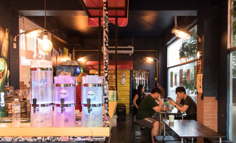 เป็นร้านที่เข้าไปแล้วต้องนึกอีกที นี่เราอยู่เอกมัยหรือข้างทางเกาหลีกันแน่เพราะด้วยบรรยากาศท่ามกลางแสงสีแดง โต๊ะวงกลม กันสาดใส ฝนพรำจำลองและเพลงเกาหลีตื๊ด ๆ ทำให้ที่นี่เสมือนร้านโพจังมาจา (ร้านเต๊นท์แดง) ฉบับออริจินัลเอามาก ๆ ใครอยากลองกระดกโซจูแกล้มสตรีทฟู้ดแบบเหล่าอปป้าในซีรีส์มาร้านนี้จะต้องไม่ผิดหวัง