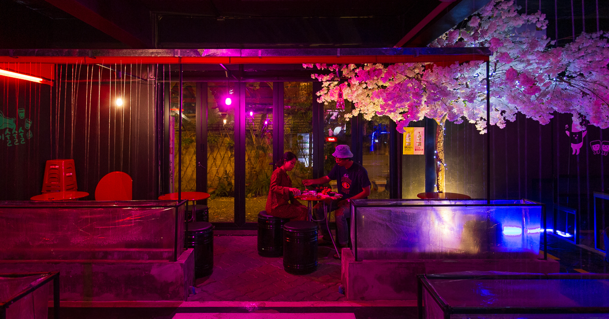 ใครเป็นสายแดนซ์สาวก เค-ป๊อบ เห็นทีต้องไปเปิดฟลอร์ที่นี่กันซะหน่อยแล้ว เพราะเขาเสิร์ฟความตื๊ดผ่านเพลงเกาหลีเวอร์ชันแท้ ๆ ที่แฟนตัวยงอย่างเรา ๆ ได้ยินแล้วอดโยกตัวตามไม่ได้ แค่นั้นไม่พอยังโมดิฟายชั้น 4 ของตึกเก่ามาเป็นผับบาร์เกาหลีได้อย่างเยี่ยมยอดทีเดียว ด้วยแสงสีจากไฟนีออนสีน้ำเงิน-ชมพูเอย โครงสร้างปูนเปลือยเท่ ๆ เอย ความครึกครื้นของบรรยากาศรอบข้างเอย พอดึกนี่เคลิ้มเลยนึกว่าอยู่โซล