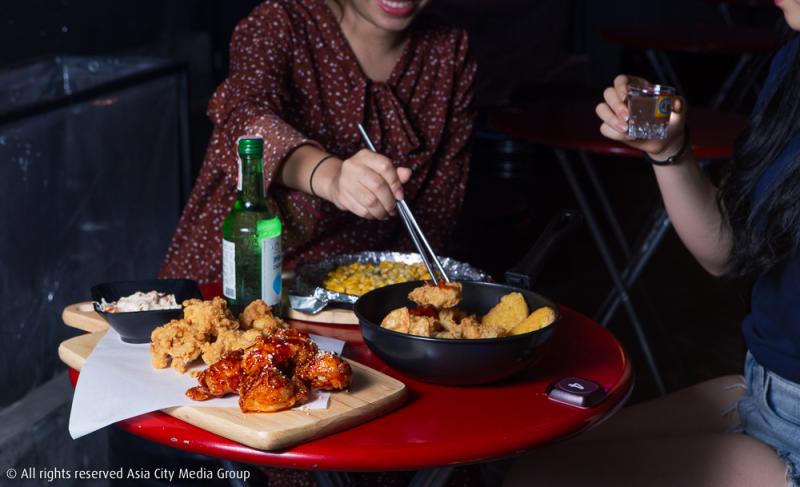 ส่วนอาหารแม้จะดูเหมือนไม่จริงจังแต่รสชาตินั้นถือว่าฝากท้องได้เลยทีเดียว ไม่ว่าจะซิกเนเจอร์ของร้านกินดื่มอย่างไก่ทอดเกาหลี KIKI Chicken ก็มีให้เลือกถึงสามรส คือ ออริจินัล สไปซี่และครีมกับหัวหอม (ราคาจะต่างกันไปในแต่ละรส) หรือต้องการแป้ง ๆ มาเสริมหน่อยเป็นมื้อหลัก ข้าวผัดกิมจิ (120 บาท) หรือชีสต็อกปกกิ (200 บาท) ก็มีพร้อม ส่วนเครื่องดื่มถือว่ามาครบมากทั้งโซจูหลากรส (230-250 บาท) มักกอลลี (250 บาท) ต้องการซอฟต์ ๆ หน่อยให้ดื่มง่ายก็จัด มักกอลลีปั่นกับสตรอเบอรี่ (300 บาท) ไปเลยหรือจะเลือกเป็นเบียร์ ไวน์เกาหลี เบียร์ผสมโซจู เบียร์ทาวเวอร์ โอ้ย เยอะมากจริง แถมตอนนี้พิเศษสุดเขามี Birthday Promo จัดเบิร์ธเดย์ปาร์ตี้ตรงกับวันเกิดรับส่วนลดไปเลย 10% ตรงกับเดือนเกิดก็รับโซจู 1 ขวดไปเลยฟรี ๆ เด้อ