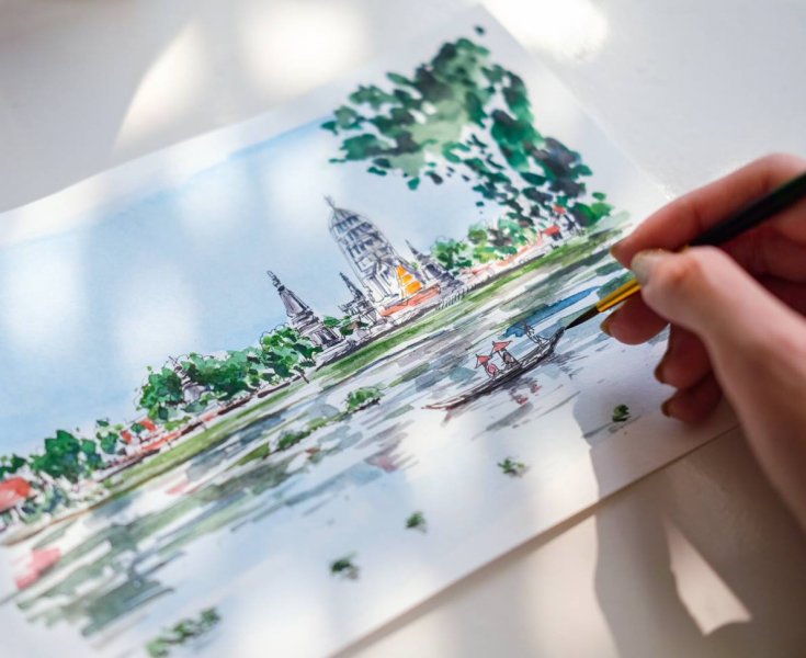 เหล่าออเจ้าทั้งหลายน่าจะฟินสุด ๆ กับคอร์สเวิร์กชอปวาดภาพตามรอยละครบุพเพสันนิวาสที่จะเราออกเดินทางจากกรุงเทพฯ ไปฝึกฝนเทคนิคการวาดภาพสีน้ำกันถึงอยุธยา ไม่ว่าจะเป็นวัดพุทไธศวรรค์ วัดพระศรีสรรเพชญ์ หรือวัดไชยวัฒนารามก็สามารถวาดได้เลยนะ