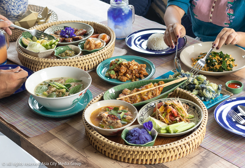 มีเมนูอาหารภาคกลางหน้าตาดีอย่างแกงเขียวหวานลูกชิ้นปลากราย (250 บาท) ที่ใช้ลูกชิ้นปลากรายทำเอง เราชอบความใส่ใจของร้านนี้ที่ใช้เครื่องแกง และวัตถุดิบทุกอย่างเหมือนทำกินเองที่บ้าน ไม่ใช่ของแช่แข็งอย่างเด็ดขาด เลยมั่นใจได้ว่าทั้งรสชาติและคุณภาพนั้นดีกว่าร้านทั่วไปแน่นอน และก็มีเซ็ตอาหารเหนือและอีสานที่ทางร้านจัดมาให้แบบรวม ๆ ไม่ว่าจะเป็น ออร์เดิร์ฟเมือง (220 บาท) และโตกอีสาน (220 บาท) คือเหมาะมาก ๆ กับใครที่ชอบพูดว่า "กินอะไรก็ได้ ง่าย ๆ"