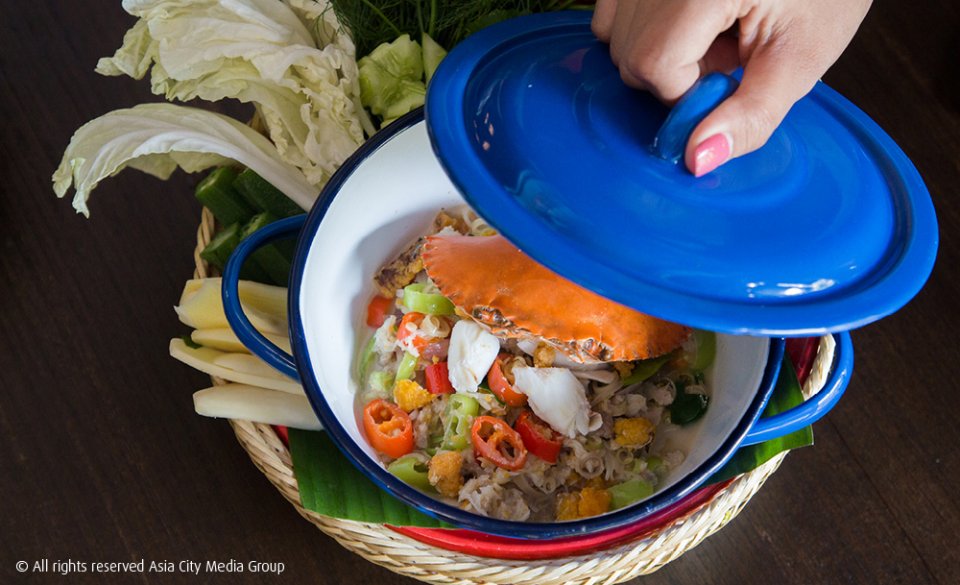 ถ้าให้เล่าย้อนไปจนถึงเรื่องราวอาหารไทยสมัยรัชกาลที่ 5 จวบจนถึงรัชกาลที่ 6 คงต้องเกริ่นยาวไปถึงครั้นเมื่อประเทศฝั่งยุโรปเข้ามามีอิทธิพลในแผ่นดินสยาม ทำให้อาหารในสมัยนั้นที่เรียกกันว่า Cuisine ได้รับความนิยมอย่างแพร่หลาย โดยเฉพาะในรั้วในวังและข้าราชกาลชั้นสูง ซึ่งห้องอาหารแห่งนี้ก็ได้นำเอาแรงบันดาลใจจากอาหารไทยแบบดั้งเดิมและอาหารฝั่งยุโรปในสมัยนั้นมาผสมผสานเป็นเมนูชูโรง ห้ามพลาดเมนูหาทานยาก อย่างขนมจีนซาวน้ำ (290 บาท) ที่เลือกใช้สับปะรดหอมสุวรรณ เคียงข้างมาด้วยเครื่องเคียงจัดเต็มตามแบบขนมจีนซาวน้ำโบราณแท้ๆ กับอีกเมนูคือ น้ำพริกลงเรือ (190 บาท) ถึงจะเป็นเมนูที่ดูคุ้นหูคุ้นตากันดี แต่มีความพิเศษลงลึกถึงรายละเอียดเล็กๆ น้อยๆ เพราะขนาดไข่เค็มที่ใช้ยังต้องเป็นไข่เค็มที่หมักจากดินเกษตรอินทรี รวมถึงผักปลอดสารพิษให้ประโยชน์ล้นจาน