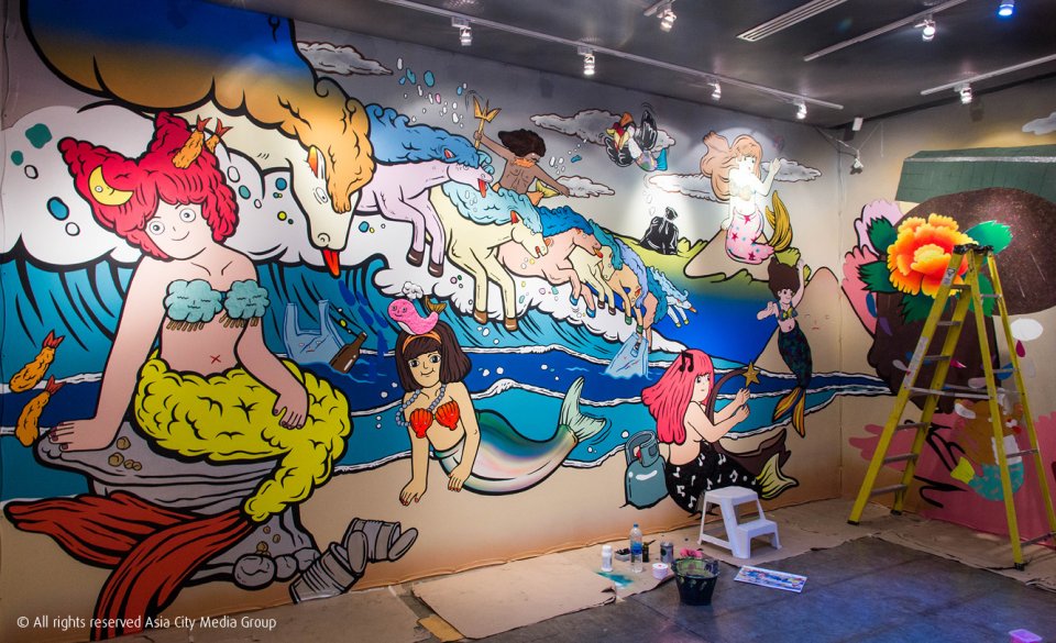 เราขอไม่สปอยล์ด้วยการบรรยายสัตว์ทุกตัวบนกำแพงนี้ (ไปดูเองจะเข้าถึงอารมณ์ได้มากกว่า เชื่อสิ!) ข้ามไปกำแพงถัดไปซึ่งเต็มไปด้วยเงือกสาวผู้กำลังเริงร่าท้าแดดอยู่กลางทะเลกันดีกว่า ถ้ามองเผินๆ โลกสุดแฟนซีที่มีสิ่งมีชีวิตวิเศษคงน่าอยู่ แต่ถ้ามองดีๆ เราจะเห็นว่ามีสิ่งแปลกปลอมเต็มไปหมดเลยนี่นา!