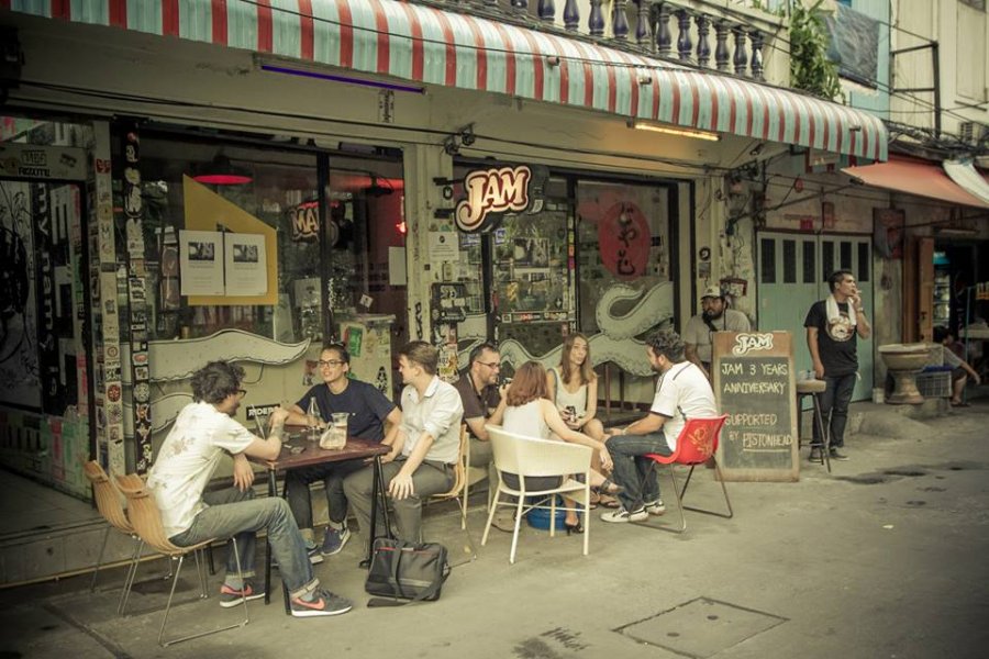 บาร์+ร้านอาหาร+แกลเลอรี่+พื้นที่ฉายหนัง คือส่วนผสมอันลงตัวของ Jam ที่ศิลปินมากหน้าหลายตาหมุนเวียนมาจัดนิทรรศการหรือแสดงดนตรีเรื่อยๆ แต่งานประจำที่ติดตามได้ทุกสัปดาห์ไม่มีขาดคือ Jam Cine Club กิจกรรมฉายหนังฟรีซึ่งจัดขึ้นทุกคืนวันพุธ เวลา 20.00 น. โดยเปลี่ยนตีมหนังทุกเดือนเพื่อไม่ให้น่าเบื่อ (แสดงว่า 1 เดือนจะดูหนังตีมนั้นๆ ได้ 4 เรื่อง) ตีมที่ผ่านมาก็เช่น '60s Psychedelic & Pulp, Seduction, Junkie บรรยากาศจะสบายๆ เป็นกันเองเหมือนนั่งดูหนังกับเพื่อนเล