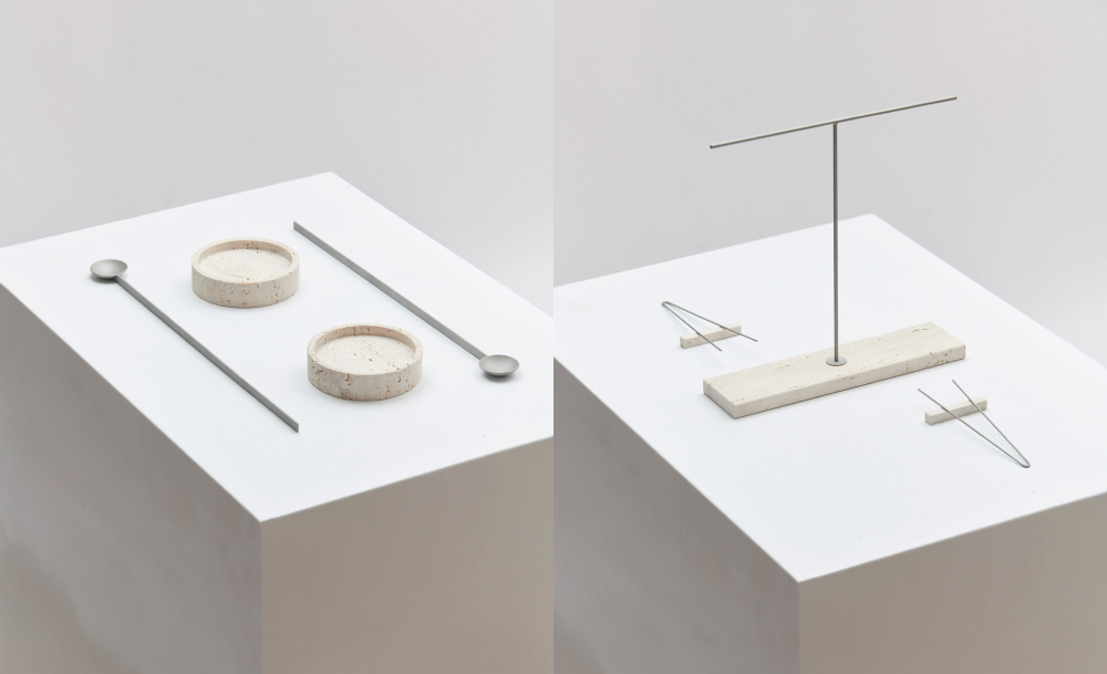 The New Normal ประกอบด้วยเทเบิลแวร์ 5 ชิ้น คือ เซตจานคู่พร้อมช้อนด้ามยาว (มาก) จานเสิร์ฟโพรชูโตทรงตัวทีสุดมินิมอล ตะกร้าวางขนมปังทรงกระบอกตัดครึ่ง จานแพลตเตอร์โลหะที่แบ่งพาร์ทิชันคนทานด้วยหินทั้งก้อน และจานกลมแบนผ่าครึ่งด้วยแผ่นหิน กลายมาเป็นเซตทานข้าวที่เรียบแต่หรู น้อยแต่มาก ละมุนตาแต่แข็งแกร่ง อย่างทีเห็น