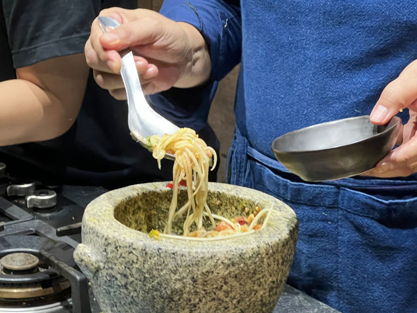 ไม่เคยคิดเลยว่าช่วงเวลาสั้น ๆ ของกิจกรรมที่เราไม่ถนัดอย่างการทำอาหารจะสามารถฮีลหัวใจได้ขนาดนี้ และยิ่งพอเป็นคลาสที่จัดโดย Bo.lan ร่วมกับ The Food Trust ออกมาเป็น Bo.lan Educational Program ที่ประกอบด้วยเวิร์กชอปหลายหัวข้อด้วยแล้ว ยิ่งทำให้เรา -ที่ปกติเป็นฝ่ายกินอย่างเดียว- ได้ลองมองอาหารเมนูเดิม ๆ ในมุมมองใหม่ไปโดยปริยาย รวมถึงเรื่องการให้ความสำคัญกับการเลือกวัตถุดิบ หลีกเลี่ยงสารสังเคราะห์ (ซึ่งจะเปลี่ยนรสชาติอาหาร) และที่สำคัญที่สุดคือ มองให้เห็น 'สตอรี่' ของเมนูจานนั้น ๆ ทั้งหมดนี้ จะเพราะการประกอบขึ้นของคลาส หรือเพราะเป็นการประกอบขึ้น 'โดย Bo.lan' ก็ไม่รู้ เลยทำให้บรรยากาศออกมาสนุกและอบอุ่นเอามาก ๆ