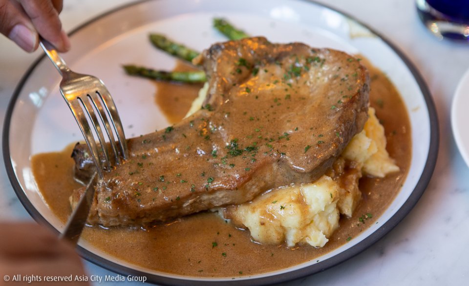 จากเส้นข้ามมาเจอเมนูหนัก ๆ อย่าง Pork Chop in Buttermilk (395 บาท) พอร์กชอปบิ๊กเบิ้มหมักเครื่องเทศอาบด้วยบัตเตอร์มิลก์วางอยู่เหนือมันบด มีหน่อไม้ฝรั่งแกล้ม นอกจากเมนูที่เราลองชิมทั้งสองนี้แล้ว ยังมีเมนูเส้นอื่น ๆ น่าสนใจอีกมากไม่ว่าจะเป็น Spicy Tomato Prawn Sauce With Spaghetti (310 บาท) Fettuccine Truffle Carbonara (195 บาท) Rotolo Bolognese (295 บาท) เป็นต้น