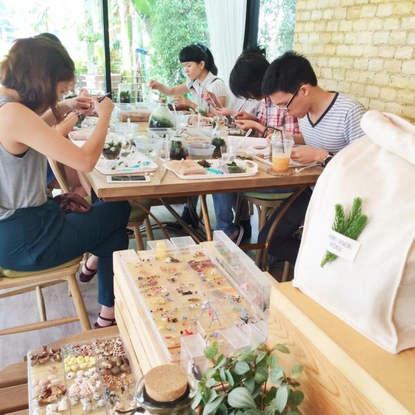 เวิร์กช็อปจัดสวนจิ๋วในภาชนะขวดแก้วรูปแบบพิเศษกับ Tiny Tree โดยมีให้เลือกระหว่าง Honey Forest (ขวดปากแคบ), High Forest (สวนแนวตั้ง) และ Big Big World (จำลองป่าฝนในขวดแก้วใบใหญ่) ถึงจะไม่เคยมีประสบการณ์มาก่อนก็ลงเรียนได้ ได้ทั้งผ่อนคลายและได้เรียนรู้การจำลองระบบนิเวศแบบปิดในถ้วยใบจิ๋ว เหมาะนำมาตกแต่งห้องอย่างมากเลย