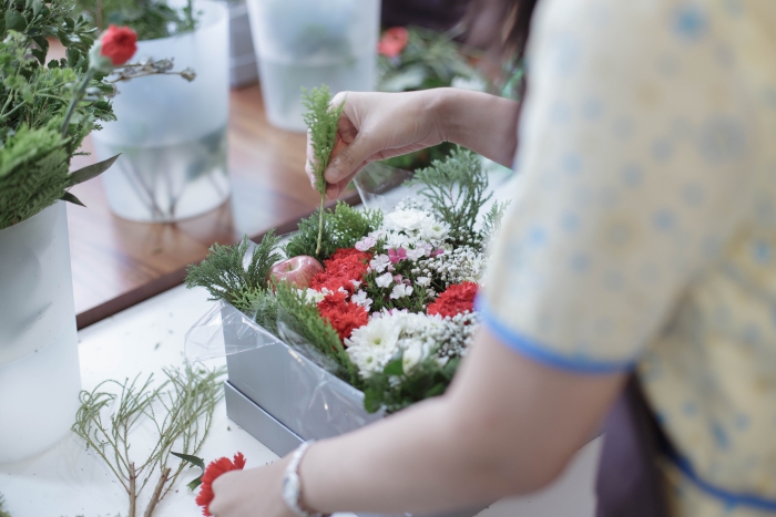 เวิร์กช็อปจัดดอกไม้ต้อนรับเทศกาลช่วงปลายปี ครั้งนี้มาในรูปแบบการจัดดอกไม้กล่อง เหมาะสำหรับนำไปมอบเป็นของขวัญให้คนพิเศษเป็นอย่างมากเลย
