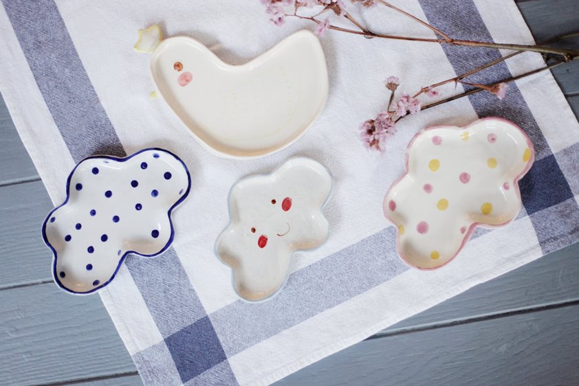 เพนท์ชุดของขวัญเซรามิคในคลาสที่นำโดย Joon Studio ประกอบไปด้วย 4 ไอเทมสุดน่ารัก อาทิ จานใบใหญ่ จานใบเล็ก ถ้วยกาแฟ และช้อนกาแฟ