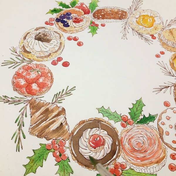 ปกติในทุกๆ เดือนก็มีเวิร์กช็อปวาดภาพของหวาน ขนมอบอยู่เป็นประจำ แต่สำหรับคลาสนี้จะมาในธีมเทศกาล ล้อมรอบไปด้วยขนมหน้าตาน่าทานมาเป็นแบบให้วาดกัน แถมยังเป็นเดือนสุดท้ายก่อนที่คาเฟ่จะไปเปิดบ้านหลังใหม่อีกด้วยนะ