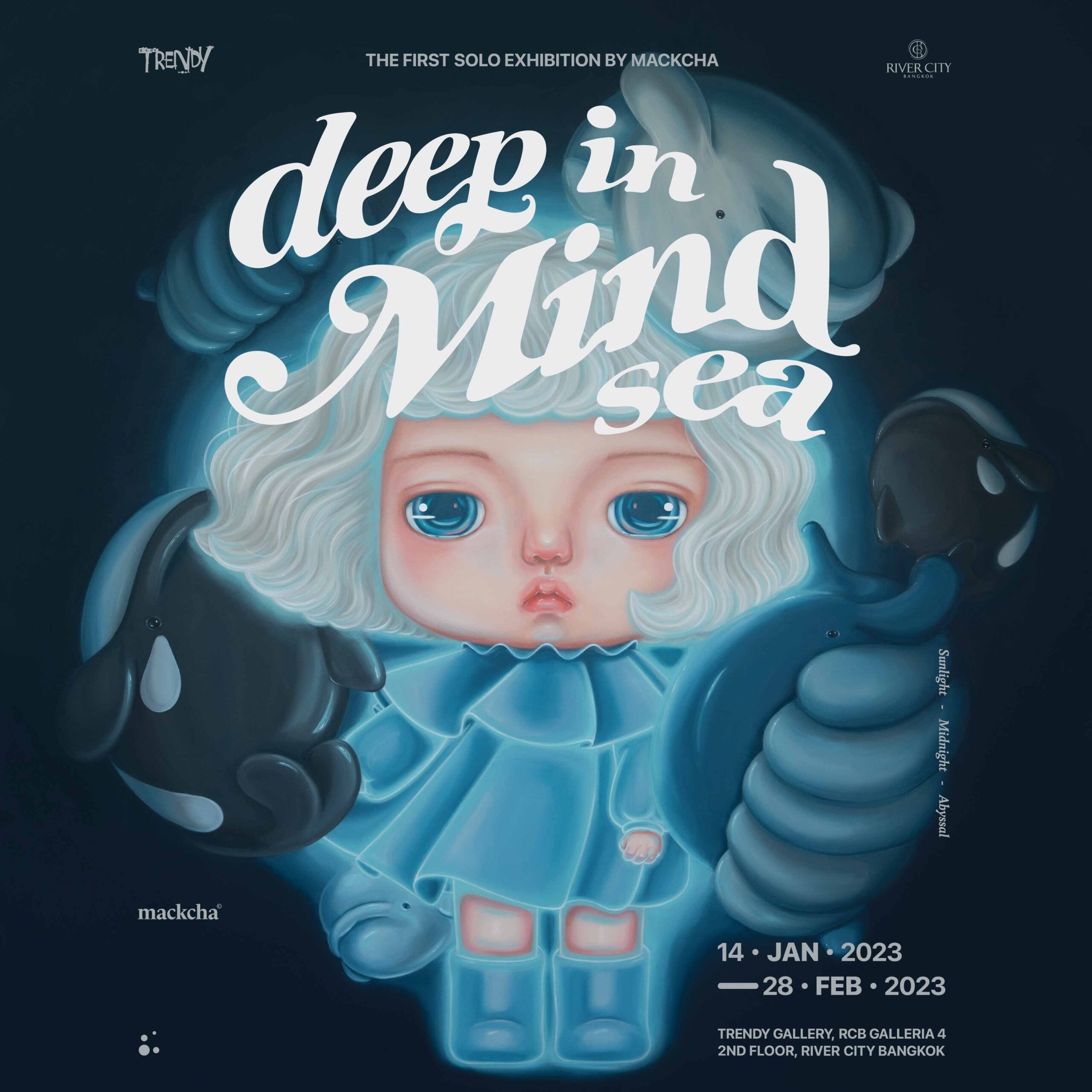 DEEP IN MIND SEA จัดแสดงถึงวันที่ 28 ก.พ. เวลาทำการ ทุกวัน 11:00 - 20:00 น. ที่ RCB Galleria 4 ชั้น 2 River City Bangkok เพิ่มเติมที่ fb.com/Trendygallery.art และติดตามศิลปินได้ทาง @mackcha และ @mackcha.art