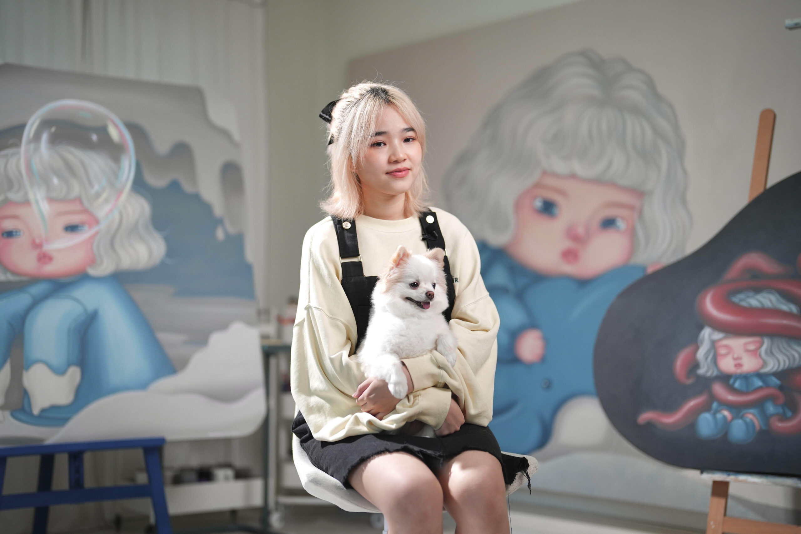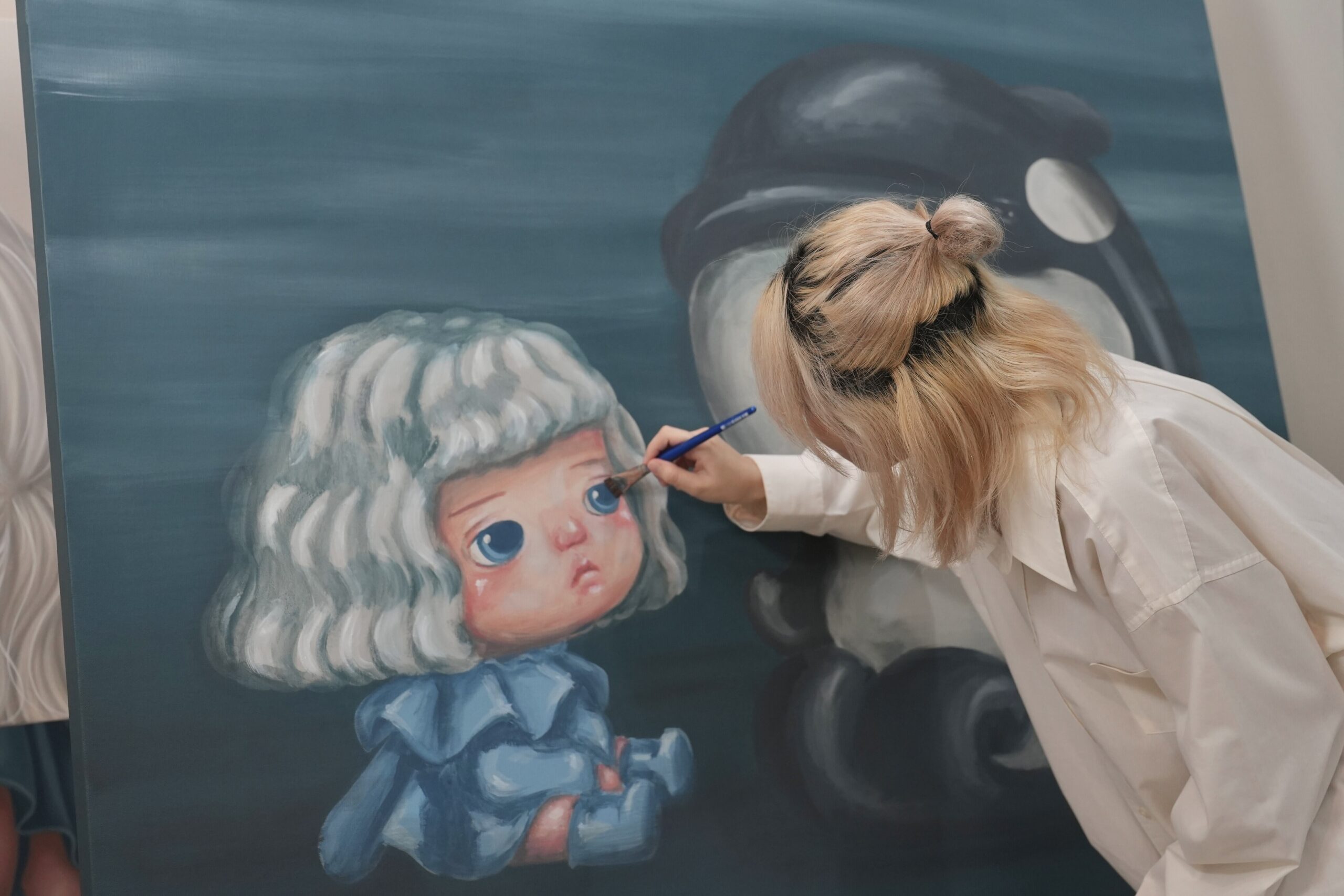 จะว่าไปน้องชาล็อตคนนี้ก็พัฒนามาจากตัวตนของเธอเองนั่นล่ะ ซึ่งพอหยิบความชื่นชอบในทะเล ห้วงน้ำ และระบบนิเวศในมหาสมุทร มาทำเป็นงานศิลปะแล้ว ก็ขาดไม่ได้ที่จะมีดีเทลเป็นเหล่าผองเพื่อนสัตว์น้ำอย่าง ปู ฉลาม วาฬ พะยูน หอยเม่น และอื่น ๆ เพิ่มเติมความคิวต์ออนท็อปจากตัวละครหลักอย่างชาล็อตไปอีก