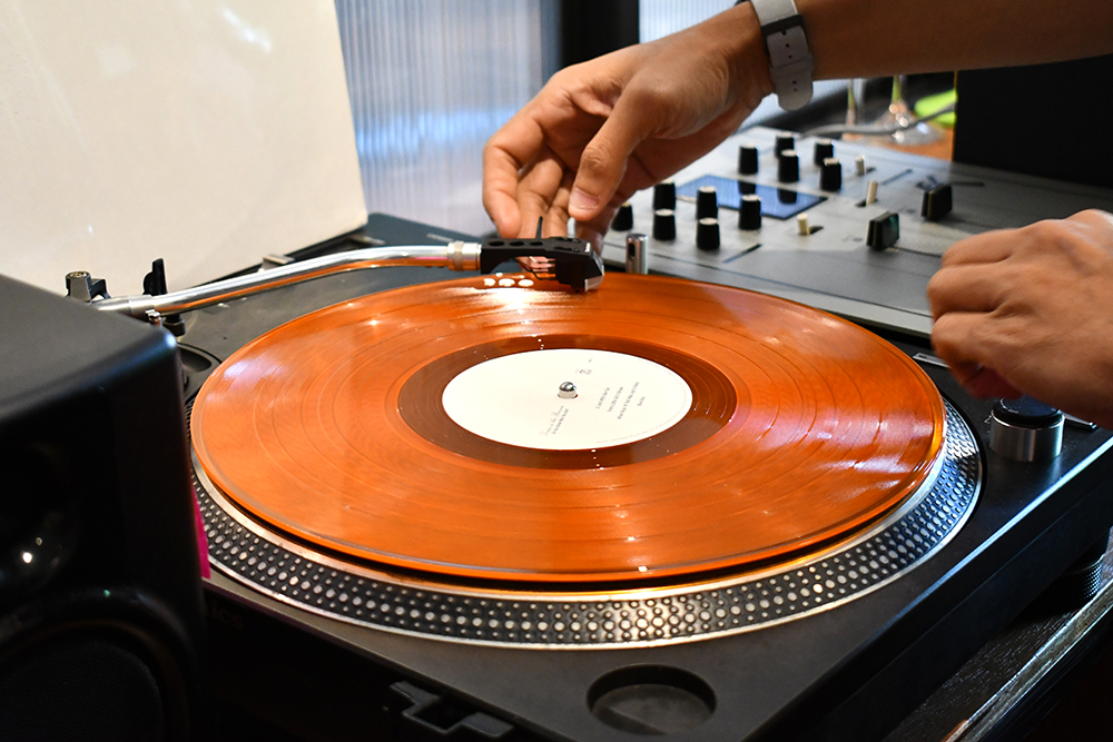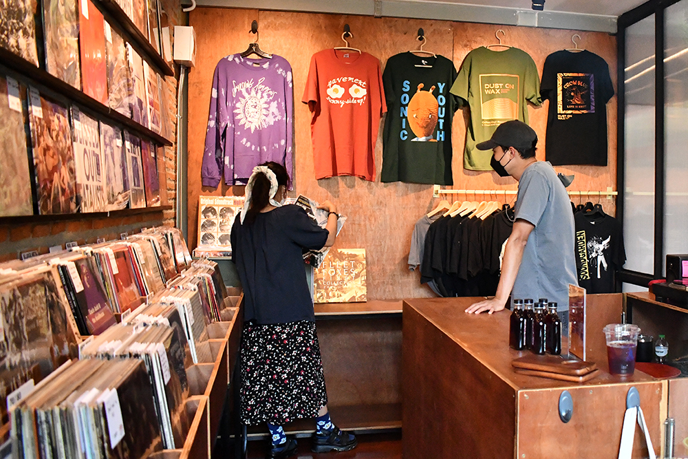 ภายในห้องสีเหลี่ยมผืนผ้าเล็ก ๆ ไซซ์กะทัดรัดที่ชวนให้นึกถึงร้าน Records Store ในย่านชิบูย่าของญี่ปุ่น อัดแน่นไปด้วยชั้นวางแผ่นเสียงที่แน่นขนัดตั้งแต่บนโต๊ะลามไปถึงบนผนัง โดยในทุกวันเราจะได้พบกับหุ้นส่วนทั้งสองคนของร้านอย่าง ออฟ สหพล พันธุ์ภักดี และ มิกซ์ ธำรงวิทย์ ศรปาลีนันท์ ที่ลาออกจากงานประจำมาเฝ้าร้านแบบเต็มตัว และคอยเปิดแทร็กโดน ๆ ให้ลูกค้าที่แวะเวียนมาได้ฟัง