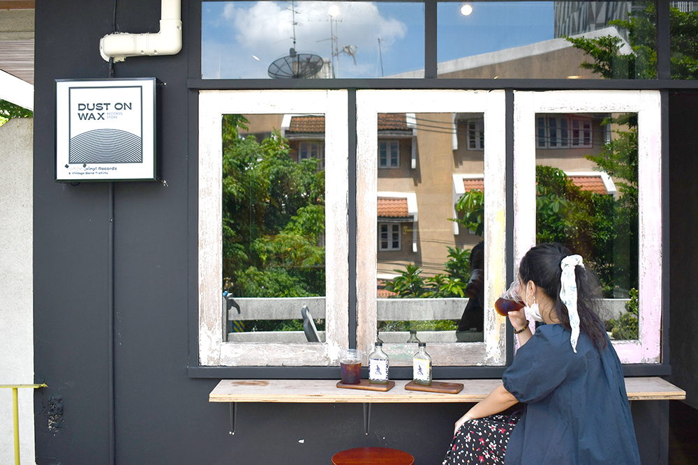 นอกจากพาร์ตแผ่นเสียงที่แค่ยืนขุดหาแผ่นทั้งร้านก็หมดเวลาไปครึ่งวันแล้ว เรายังสามารถมานั่งชิลล์ที่นี่ต่อได้ยันดึกที่โซนที่นั่งเล็ก ๆ แต่อบอุ่นริมระเบียงที่เตรียมไว้สำหรับคนอย่างนั่งพักจิบเครื่องดื่ม โดยมีกาแฟโคลด์บริวที่ร้านทำเองให้เลือกหลากหลายสูตร อาทิ Shambhala (130 บาท) กาแฟสกัดเย็นสูตรซิกเนเจอร์ที่ได้จากการใช้เมล็ดบราซิล กัวเตมาลา และเอธิโอเปีย กับอีกตัวที่เราชอบมากคือ Trinity (110 บาท) โคลด์บริวที่ให้อาฟเตอร์เทสต์โทนช็อกโกแลตจากการเลือกใช้เมล็ดกาแฟสายพันธุ์นอกอย่างบราซิลและโคลัมเบีย มาผสมกับเมล็ดไทยจากป่าเมี่ยง