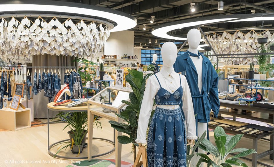 ถ้าใครกำลังหลับตานึกถึงภาพเสื้อม่อฮ่อมกับผ้าถุงลายปักบ้าน ๆ เราบอกเลยว่าคิดผิด ! เสื้อผ้าใน Ecotopia จะเลือกมาเฉพาะแบรนด์เสื้อผ้าดีไซน์ยูนีคที่มีเรื่องราวความเป็นมาจากของวัตถุดิบพื้นบ้านล้วน ๆ อาทิแบรนด์ Ritimian, Beach Daze Bag, Taktai และ Bhukram